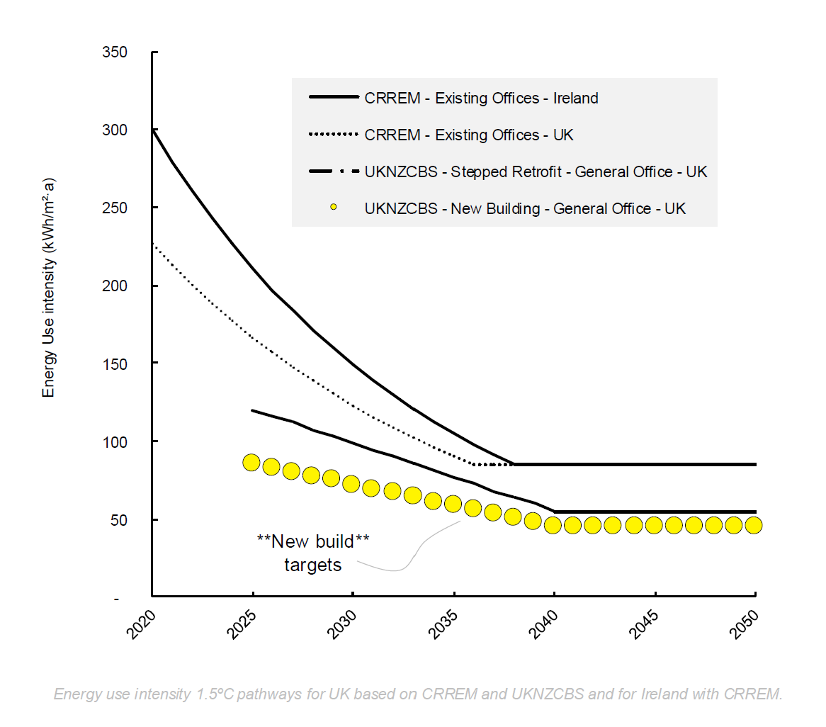 The case of our Cumberland Place office demonstrates the value of this approach – its energy use intensity is already better than the UKNZCB's 2034 target for retrofitted UK offices and CRREM's 2050 target for Irish offices.